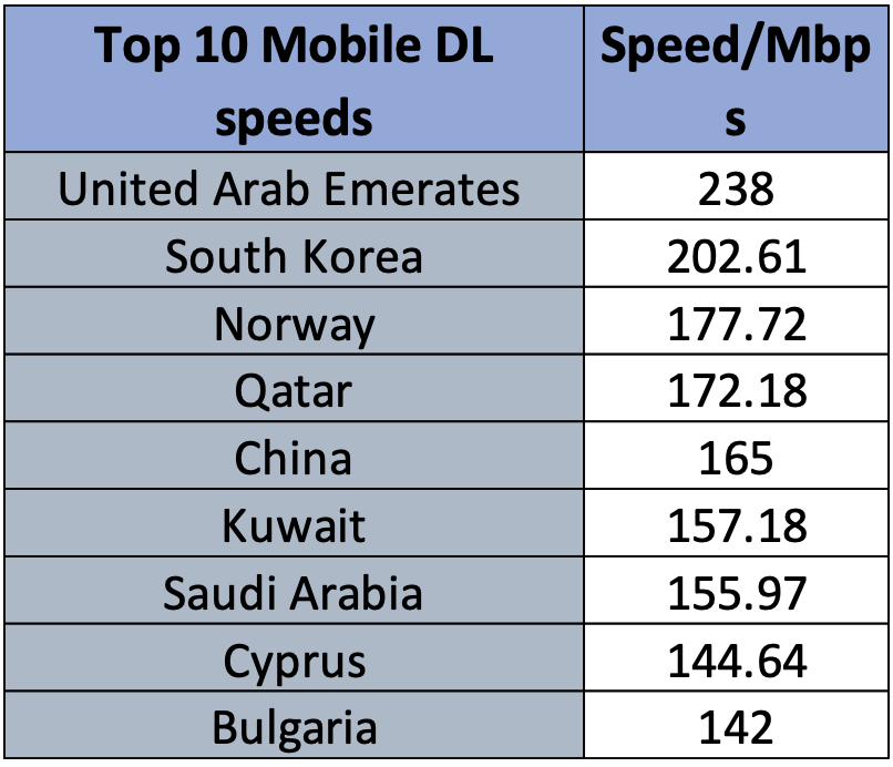 - 6 out of the top 10 Mobile Internet Speed is from ME/Easter Europe